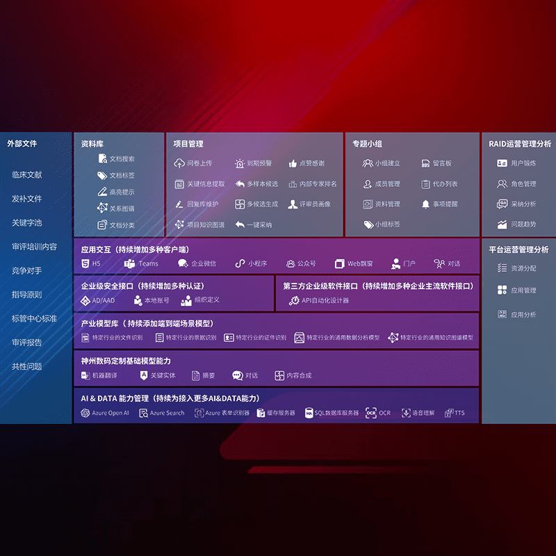 医疗器械产品上市前,,,,要熟悉严格与繁复评审标准,,整理分析监管机构指导文件中的海量信息。。。。企业急需一个智能化解决方案,,,提升知识管理效率,,,,提高评审通过率,,,,以提升其市场竞争力。。